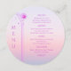 Menykort för Mystical Sunset Rosa Sol Stars Space Bröllop har enkla rosa- och lila stjärnor på en solnedgångskontakt på en pastellstrand med menydetaljer i mitten i det moderna kalligrafiskriptet för lila. Anpassa genom att redigera texten i textrutorna. Designad av Evco Studio www.zazzle.com/store/evcostudio