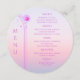 Menykort för Mystical Sunset Rosa Sol Stars Space Bröllop har enkla rosa- och lila stjärnor på en solnedgångskontakt på en pastellstrand med menydetaljer i mitten i det moderna kalligrafiskriptet för lila. Anpassa genom att redigera texten i textrutorna. Designad av Evco Studio www.zazzle.com/store/evcostudio