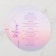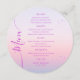 Menykort för Mystical Sunset Rosa Sol Stars Space Bröllop har enkla rosa- och lila stjärnor på en solnedgångskontakt på en pastellstrand med menydetaljer i mitten i det moderna kalligrafiskriptet för lila. Anpassa genom att redigera texten i textrutorna. Designad av Evco Studio www.zazzle.com/store/evcostudio
