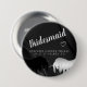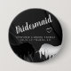 Ett vackert Unicorn-tema som matchar bröllop-knappen för Bridesmaid. Utformningen har en svart och en silver-enmajskorsning på en elegant med svart snurrande bakgrund. Anpassade med Bridesmaids namn för en söt personlig. Designad av Robin D. Cox.