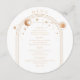 Menykort för Mystical White Guld Måne Stars Space Bröllop har en guld sol, måne och stjärnor ram på en vit bakgrund med menydetaljer i mitten i det moderna Sol-kalligrafiskriptet. Anpassa genom att redigera texten i textrutorna. Designad för dig av Evco Studio © på www.zazzle.com/store/evcostudio