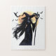 Förbered dig på nattens fantastiska kraft med den här fantastiska designen med en mystisk häxa som står högt under en glödande fullt måne.