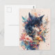 Mystical Wolf in Vibrant Watercolor Blooms Vykort