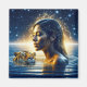 Ai-konst skildrar en vacker kvinna som simmar i serene vatten med en tiger under stjärnorna.