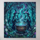 Denna mystiska affisch visar två häxor som brygger en glödande dryck i en månljust förtrollad skog, omgiven av virvlande magi och lysande tealblått ljus. Gjord i en oljeakryl målerisk stil.