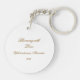 The reverse side offers a minimalist contrast: a clean white background featuring an elegant script in a refined gold-toned hue. The text, name, and year can be easily customized, making this keyring a truly unique and personalized gift.