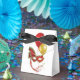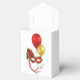 Tält-stil med en svart banderoll med en kabaretbild på framsidan och baksidan av en röd mask och guld och en röd ballong och guld. Se matchningsinbjudan, konfekt, förmånspåse, presentpåsar, presentpåsar, märkre, rund dekal, vinyldekal med anpassningsbar och papper förpackning. Visa hela samlingen för Cancan Favor Box i SPECIELLA TUUCHES | Avsnittet Party favors.