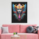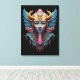 Gör ett djärvt uttalande med denna fantastiska psykedeliska gudomsmaskdesign. Med svepande gyllene horn, stora fjäderbeklädda vingar och ett utsmyckat dekorerat ansikte i rik teal, kobolt, violett och guld, är detta iögonfallande tryck fullpackat med intrikat detaljrikedom som belönar en närmare titt varje gång.