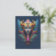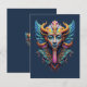 Gör ett djärvt uttalande med denna fantastiska psykedeliska gudomliga maskdesign. Med svepande gyllene horn, stora fjäderbeklädda vingar och ett utsmyckat dekorerat ansikte i rik teal, kobolt, violett och guld, är detta iögonfallande tryck fullpackat med intrikata detaljer som belönar en närmare titt varje gång.