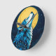 Mystisk blå varg som ylar mot fullmåne rund klocka