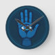 En stiliserad avbildning av en hand med ett öga i handflatan, med en kosmisk blå estetik. Bilden antyder mystik, andlighet och skydd, och frammanar teman som Hamsa och det allseende ögat.
