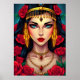 Mystisk kvinna med blå Ögon och Röd ros Poster