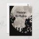 Stor ljusgrå måne bakom svarta blad i svart himmel, text: ‘Grattis på födelsedagen’