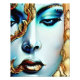 AI-konst genererad surrealistisk eterisk vacker kvinna med blå och guld detaljer. generativt innehåll