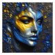 Ett speciellt porträtt i ett söt dam ansikte med en 3D-symbol känner sig präglat och texturerat. Färg är som royal blått och djupt gult ge en glansig hand. Bakgrunden, som en mystisk natt himlar, har friare fyllda med färg på ett kol yta. Ett abstraktens mästerverk.