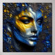 Ett speciellt porträtt i ett söt dam ansikte med en 3D-symbol känner sig präglat och texturerat. Färg är som royal blått och djupt gult ge en glansig hand. Bakgrunden, som en mystisk natt himlar, har friare fyllda med färg på ett kol yta. Ett abstraktens mästerverk.
