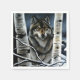 En slående och själsfull framställning av en ensam varg som framträder mellan snöbeströdda björkar, denna konst fångar den tysta intensiteten i vildmarken på vintern. Med glödande bärnstensfärgade ögon och rikt detaljerad päls står vargen vakt över ett stillsamt vinterlandskap, där en slingrande flod skär genom skogen under en skymningshimmel.