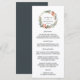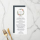 Vår stilrena meny för bröllop innehåller dina förrätter, varmrätter och desserter i elegant typsnitt, med era namn omgivna av en grön botanisk krans av akvarell vinterblommor, julstjärna och kottar. Koordinater med vår Mystical Winter brölloppskollektion.
