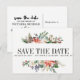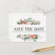 Utkastad för att samordna med vår Mystical Winter-vattenfärg blommiga brölloppskollektion, Omgiven av ömtålade målade vinterblommor, julstjärna och kotte och placerad på en vit bakgrund, är denna design iögonfallande och mycket vacker. Modern och enkel "save the date"-postkort visas i mitten bland bladverket och en mall-postkort finns på baksidan. Alla textstilar, färger och storlekar kan också ändras för att passa dina behov