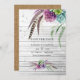Trendigt rustikt sukkulentväxt bohemiskt bröllopsinbjudan med boho-fjädrar anpassningsbart till din evenemangspecifikation. Perfekt för alla teman eller trädgårdsbröllop.