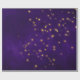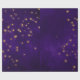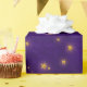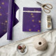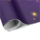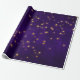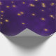 Lila och guld nödlidande förpackning papper med ljusa gyllene stjärnor.