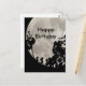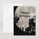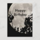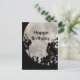 Stor ljusgrå måne bakom svarta blad i svart himmel, text: ‘Happy Birthday’