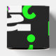 Ett kollage av frågetecken belyser mysteriet. Vad kan finnas inuti? Roligt för- eller presentlåda.