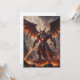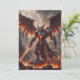 Den här fängslande bilden har ett starkt demoniskt figur som står i ett eländigt landskap. Figur skryter med stora, fladdermus-liknande vingar som är uppslukat av flammor och är klädd i mörk, spikad rustning. Dess glödande röda ögon och hotfulla uttryck, kompletta med stora, böjda horn, ökar dess överväldigande närvaro. Demonen tappar högerna i ett flammande svärd, och ser ut som om den blåstes av en inre brand. Den dramatiska bakgrunden till stormien himmel, blixten och gothic-stil byggnad förstärker scenens intensiva och episka atmosfär, skapar denna teckning en slående bild av en mytisk varelse i ett dominansögonblick.