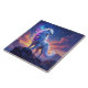 Add a mythical touch to your walls with this tile, which features a majestic white griffin with a mane of swirling galaxies, standing proudly on a rocky outcropping overlooking a nebula-filled sky, with the setting sun tinging the clouds orange and yellow.