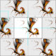 En abstrakt konstform av en mytisk flygande drake i rött, guld och svart, som också lämnar en bild av flygplanet väg.