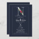 N Monogram senaste initiala, moderna, blå Blommigt Inbjudningar