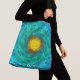 En flervågsbild (blå, gult, grönt) som liknar fjärilar eller månader och som sprids från en mittpunkt. Lägg till din egen text.