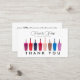 Nagel polskt Färg Set Nail Salon Discount Card har ett manustypografiskt företag namn på en vit bakgrund som belyser uppsättningen nagel polch i olika färger. Om du behöver ytterligare anpassningsassistans ska du kontakta designern.