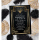 Bröllopståret 20s 1920-talets Art Deco Gatsby-fest Geometrisk Metallisk Svart och Guld Födelsedagsmordmysterium Bröllop Spara datumet Jubileum Förlovningsinbjudan