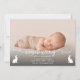 Fira din nyfödda med detta eleganta och moderna födelsekort, genomtänkt designat av Destei för påsk eller vårens nyfödda. Kortet har ditt anpassade foto som bakgrund, överlagt med den dekorativa “Somebunny”-typsnittsstilen med subtila detaljer som liknar ömtåliga grenar. Under bilden står “special has arrived” med utrymme att lägga till ditt barns namn, födelsedatum och vikt, plus en plats för familjens namn.
