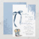 Denna eleganta inbjudan har en charmig blå slinga, glitterdroppar och blomsterprydd cowboy stövlar perfekta för en "något blå" bröllopsfest. Dessa bröllopsinbjudningar kan enkelt anpassas för din fest genom att bara lägga till dina detaljer.