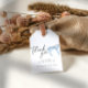 Moderna tack-kort för dina bryllopspresenter med blått band. Perfekt för en "Hon knyter knuten"-inspirerad möhippa.