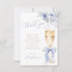 Skicka dina hjärtliga tack med detta eleganta tackkort med graciös skrift och en mjuk dammig blå slinga knuten till ett champagneglas och blå blommor.