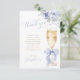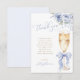 Skicka dina uppriktiga tack med detta eleganta tackkort med graciös skrift och en mjuk dammig blå slinga knuten till ett champagneglas och blå blommor.