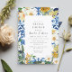 Den här vattenfärgsfärgade blommigten chinoiserie inbjudningskort för möhippan har Garden-vilda blommor i vit, varm gult och orange färg.Den varma gulten, kräm, vit och dammiga blå färg är en färg palett för perfekt för vår och sommartid i bröllop.