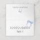 Vikta platskort med handmålad dammig blå akvarellbåge. Perfekt för en "Hon binder knuten"-tematiserad bröllopsfest.