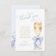 Skicka dina hjärtliga tack med detta eleganta tackkort med graciös skrift och en mjuk dammig blå slinga knuten till ett champagneglas.