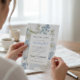Be din bästa vän att vara din brudtjänsteflicka med detta eleganta "Vill du vara min Something Blue" -kort. Med en delikat vattenfärgblomma design i mjuka blå och vita nyanser sätter detta kort en romantisk och hjärtlig ton för din förfrågan. De vackra blommorna som omger texten skapar en fantastisk visuell effekt som perfekt kompletterar känslan av att fråga någon så speciell att stå vid din sida på din bröllopsdag. Detta kort är utformat för att förmedla din djupaste uppskattning och kärlek när du inleder din bröllopsresa tillsammans.