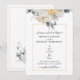 NÅGOT BLÅTT! Traditionell blommig bröllopsinbjudan med elegant blå och vit blomdesign på en dämpad bakgrund med guldtrimning