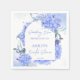 Something Blue hortensior elegant blomsterbåge bröllopsdusch personliga servetter, botaniska akvarellblommor, ljusblå akvarellbakgrund, modernt vardagligt typsnitt.