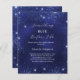 En marin blå bakgrund, dekorerad med blå faux glitter. Den blå färg är ojämn. Anpassa och lägg till information om namn och party. Text: Något blått före mig. 1 lakan = 1 inbjudningskort för möhippan tryckt kant i kant.