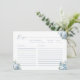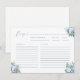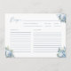 Lägg till en tidlös och personlig touch till din bröllopsfest med detta eleganta receptkort i blå hortensia, designat för att matcha bröllopssamlingen Something Blue. Med ömtåliga akvarellhortensior i mjuka blå och gröna nyanser är detta receptkort den perfekta följeslagaren till en receptdelningsaktivitet eller en personlig gåva till den blivande bruden.