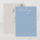 Mjuk, romantisk och vacker i detalj – dessa platta tackkort är det perfekta sättet att visa din uppskattelse efter din bröllopsfest. Mot en drömlik dammig blå bakgrund har framsidan "tack" i flytande kalligrafiskrift, med "från den blivande fru Smith" elegant skrivet längst ner. Baksidan är prydd med ett fantastiskt akvarellblått blomster- och grönarrangemang med en delikat fjärilsaccent, som ger en frodig, trädgårdsinspirerad avslutande touch.