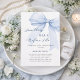 En elegant vit bakgrund, dekorerad med blå båge. Anpassa och lägg till information om namn och party. Text: Något blått före mig.