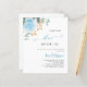 En vit chic bakgrund. Dekorerad med en dammig blå blommigt, ro-blomma och grönt vattenfärgad eukalyptus löv, sprig, grönsak och faux guld-sprig. Anpassa och lägg till namn i bruden för att vara och detaljer. Text: Något blått före mig. 1 ark = 1 broskduschinbjudan med tryckt kant till kant.